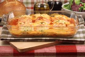 ثم يرص طبقه من البطاطس ويخلط القشطه و الجبن الموزاريللا